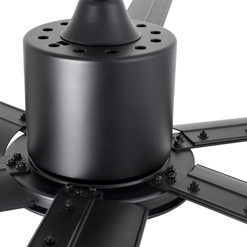 Descripción del ventilador Andros Faro - 213 cm Materiales | Base motor | Acero | Aspas | Aluminio | Accionamiento | Accionamiento mediante | Mando a distancia | Mando a distancia | Sí | Programador de apagado | No. | | Aspas | Numero de aspas | 6 | Reversible | No | Tonalidad de las aspas | Negro | | Motor | Tipo | DC de bajo consumo | Velocidades | 6 | Revoluciones / Consumo | 1ª velocidad: 30 rpm / 4w. 2ª velocidad: 41 rpm / 6w. 3ª velocidad: 53 rpm / 10w. 4ª velocidad: 64 rpm / 15w. 5ª velocidad: 74 rpm / 22w. 6ª velocidad: 88 rpm / 35w. | Funcion Verano / Invierno | Sí | Flujo de aire | 406,40m3 por minuto / 14352 CFM. | | Iluminación | Luz | No | Montaje | Peso | 8,4 Kg. | Posible montaje sin barra | No | Montaje en techo inclinadio | Sí* | Tonalidad | Tonalidad de metal | Negro | Aspas reversibles | No | Tonalidad de aspas | Negro | - #MEDIDAS#
