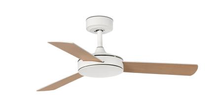 Materiales | - Base Motor: Acero - Aspas: Plywood | | Tonalidad de Metal | Blanco mate | Accionado mediante | Mando a distancia. | Programador de apagado | - | Numero de Aspas | 3 | Tonalidad de Aspas | Reversibles: Blanco / Arce | Motor Tipo | DC - Bajo Consumo | Velocidades | 6 | Velocidades / Consumo | - 1ª velocidad: 126 rpm - 6w - 2ª velocidad: 156 rpm - 7w - 3ª velocidad: 186 rpm - 10w - 4ª velocidad: 218 rpm - 13w - 5ª velocidad: 240 rpm - 18w - 6ª velocidad: 270 rpm - 23w | | Flujo de Aire | - | Función Invierno | Si. Activada en el mando. | Luz | No | Posible montaje sin barra | No | Posible montaje en techo inclinado | Sí* | Grafico de medidas Ventilador Mini Mallorca S Faro | |