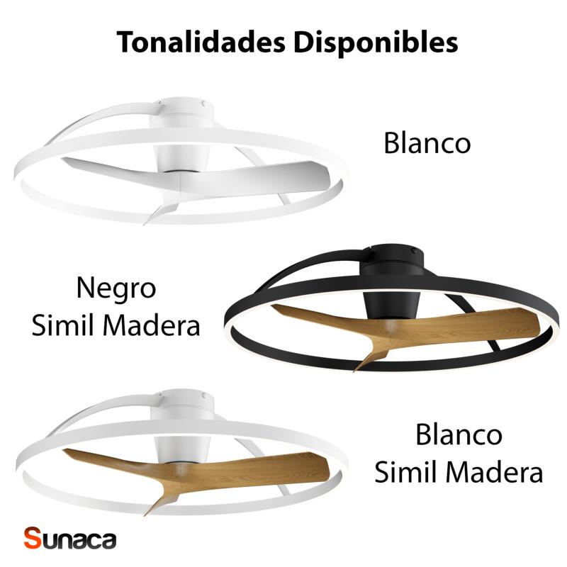 | Ventilador de Techo Nepal II Mantra | | Ventilador de techo con gran luminosidad equipado con aro exterior LED con 3 tonalidades de luz a seleccionar y graduar también en intensidad. Motor DC de bajo consumo de 6 velocidades. Todas las funciones del ventilador pueden graduarse desde el mando a distancia. | Caracteristicas Ventilador Nepal II Mantra | Materiales | - Base motor: Acrilico y metal - Aspas: Acrilicas | | Tonalidad de Metal | Blanco | Accionado mediante | Mando a distancia | Programador de apagado | Sí | Numero de Aspas | 3 | Tonalidad de Aspas | Blancas | Motor Tipo | DC - Corriente Continua | Velocidades | 6 | | Velocidades / Consumo | Sleep mode: 145 rpm - 3.5w - 2700 m3 - 32dB - 1ª velocidad: 145 rpm - 3.5w - 2700 m3 - 35.9dB - 2ª velocidad: 200 rpm - 7w - 3350 m3 - 37.9dB - 3ª velocidad: 2225 rpm - 9.5 w - 4200 m3 - 39.9dB - 4ª velocidad: 240 rpm - 12.5w - 4800 m3 - 41.6dB - 5ª velocidad: 285 rpm - 21.5w - 5400 m3 - 43.3dB - 6ª velocidad: 310 rpm - 32w - 6200 m3 - 45dB | | Flujo de Aire | 6200 m3 | Función Invierno | Sí. | Luz | Si - Luz LED 32w. | Datos de Luz | 2200 lúmenes - 2700-5000k - Luz Seleccionable | Luminaria Incluida | Si | Posible montaje en techo inclinado | No | Grafico de medidas Ventilador Nepal II Mantra | |