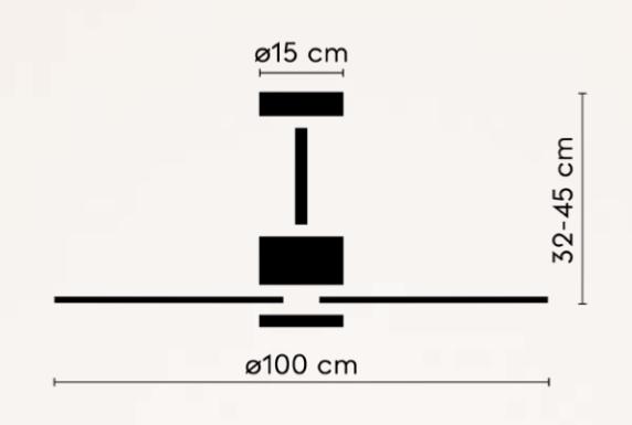|  | Ventilador de Techo Alma S Sulión | | Caracteristicas Ventilador Alma S Sulion | Materiales | - Base Motor: Metal - Aspas: Madera Media | | Tonalidad de Metal | Marron Oxido | Accionado mediante | Mando a distancia. | Programador de apagado | Sí | Numero de Aspas | 3 | Tonalidad de Aspas | Madera Media | Motor Tipo | DC - Bajo Consumo | Velocidades | 6 | Velocidades / Consumo Caudal de aire | - Potencia Minima 4 - Maxima 26 - RPM Minimo 4 - Maximo 26 - Sonido Minimo 32 - Maximo 55 | | Flujo de Aire Máximo | 166 m3 x minuto | Función Invierno | Si. | Luz | No. | Posible montaje sin Barra | No. | Posible montaje en techo inclinado | Si*. | Grafico de medidas Ventilador Alma S Sulion | |